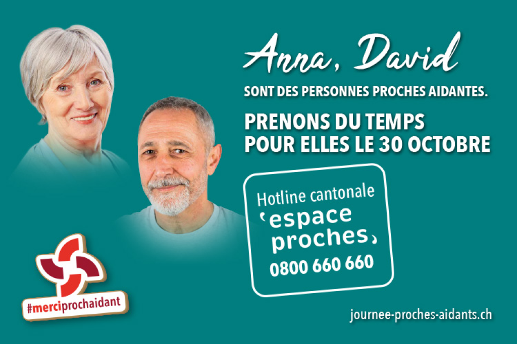 Pour toute question sur les aides et soutiens disponibles pour les proches aidant∙e∙s : la ligne téléphonique gratuite d’Espace Proches est à votre disposition pour vous écouter, vous informer et vous orienter : 0800 660 660 – www.espaceproches.ch