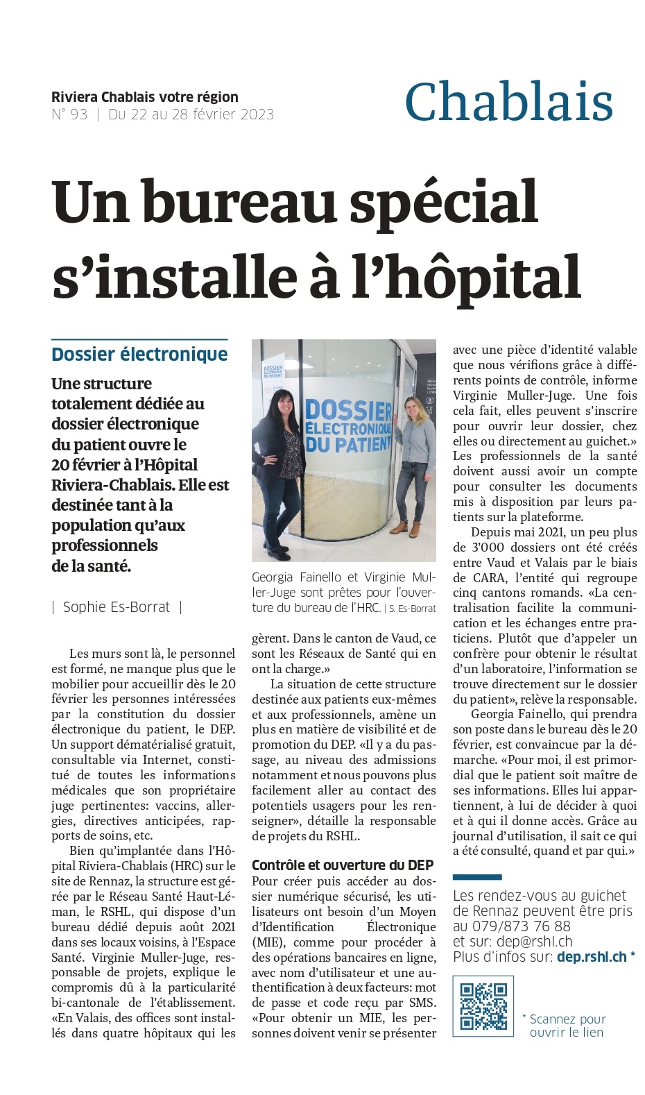Article_RivieraChablais_Février 2023 Article _Le Temps_03.11.2025Dossier électronique du patient – DEP sur nos réseaux